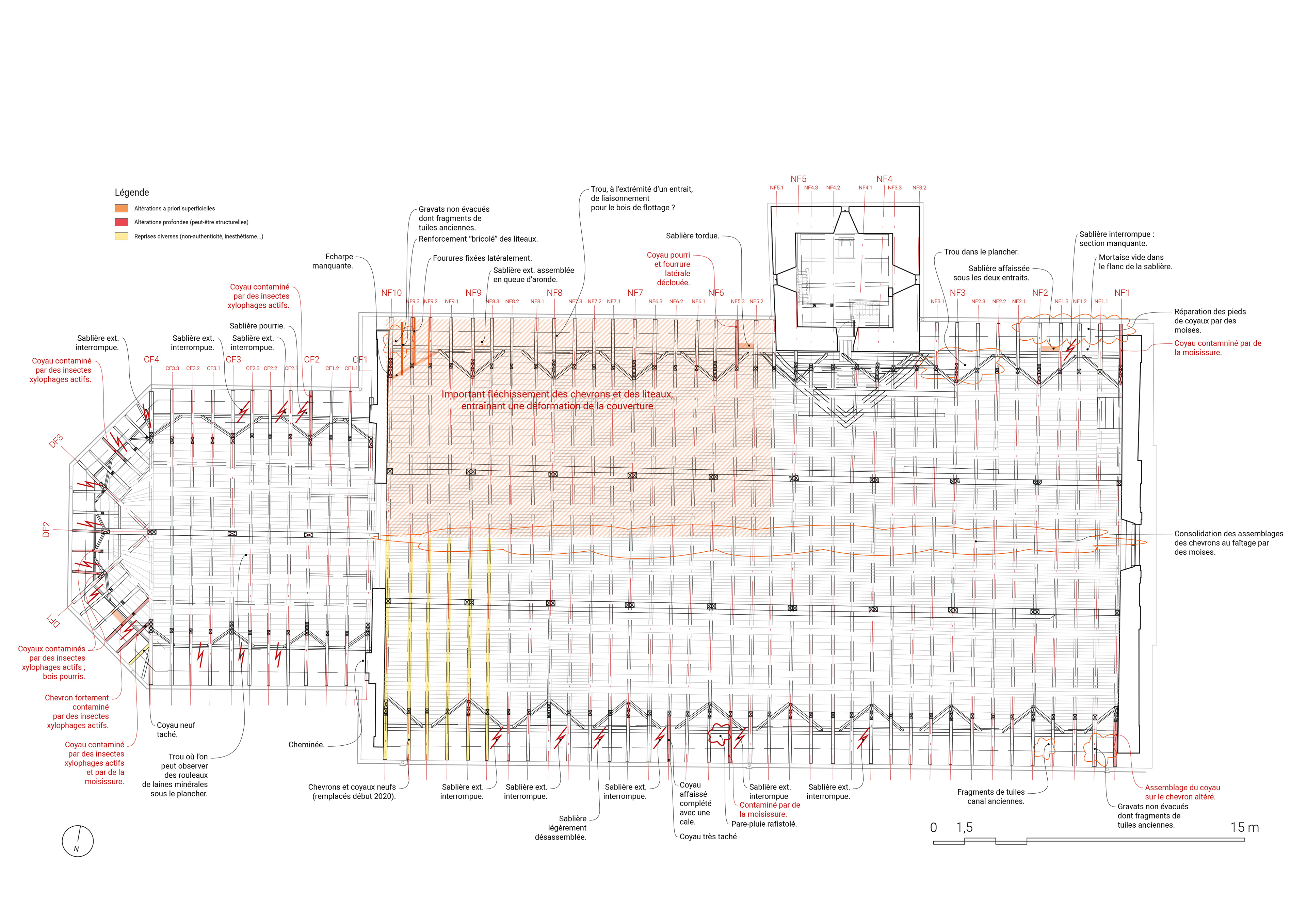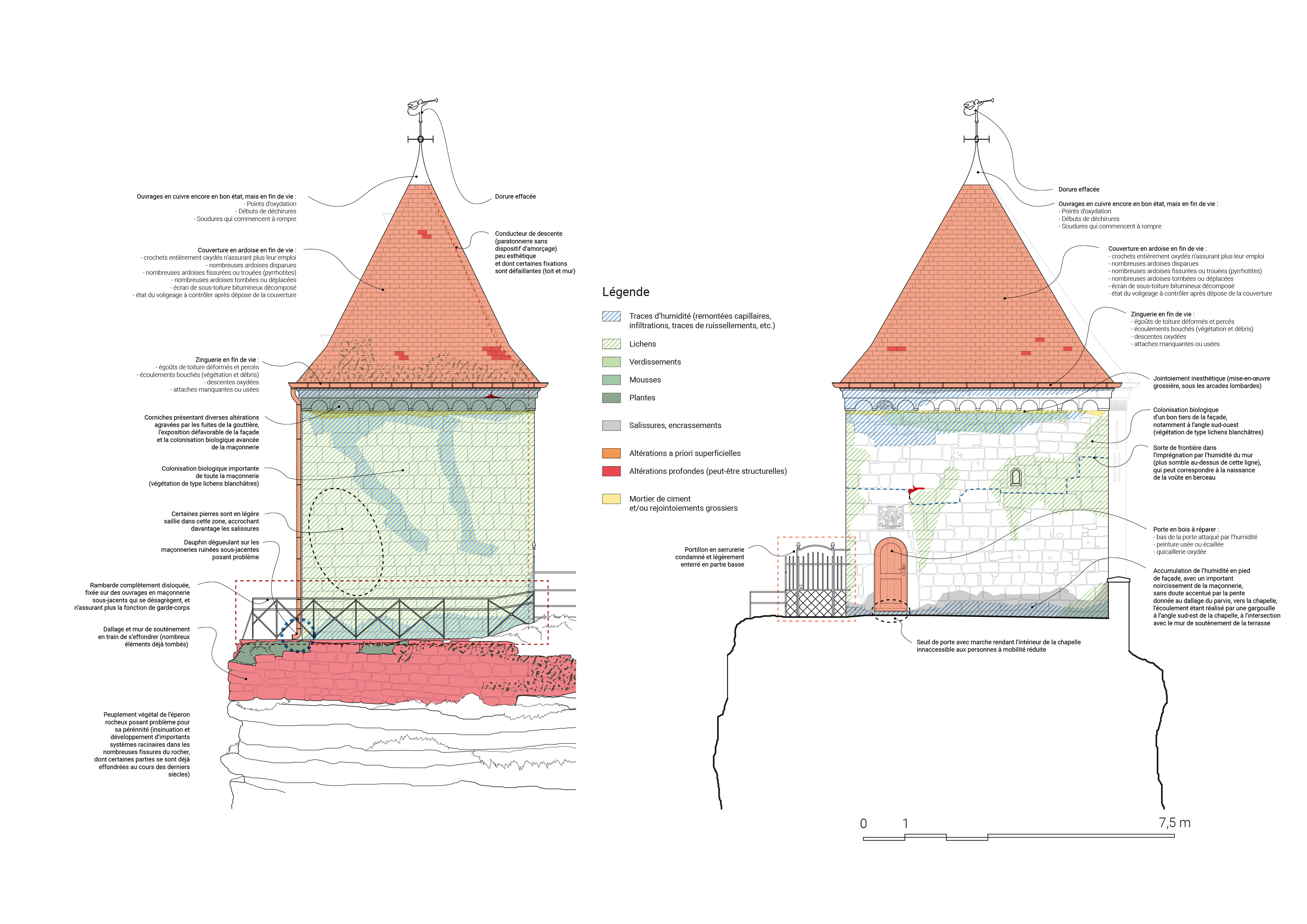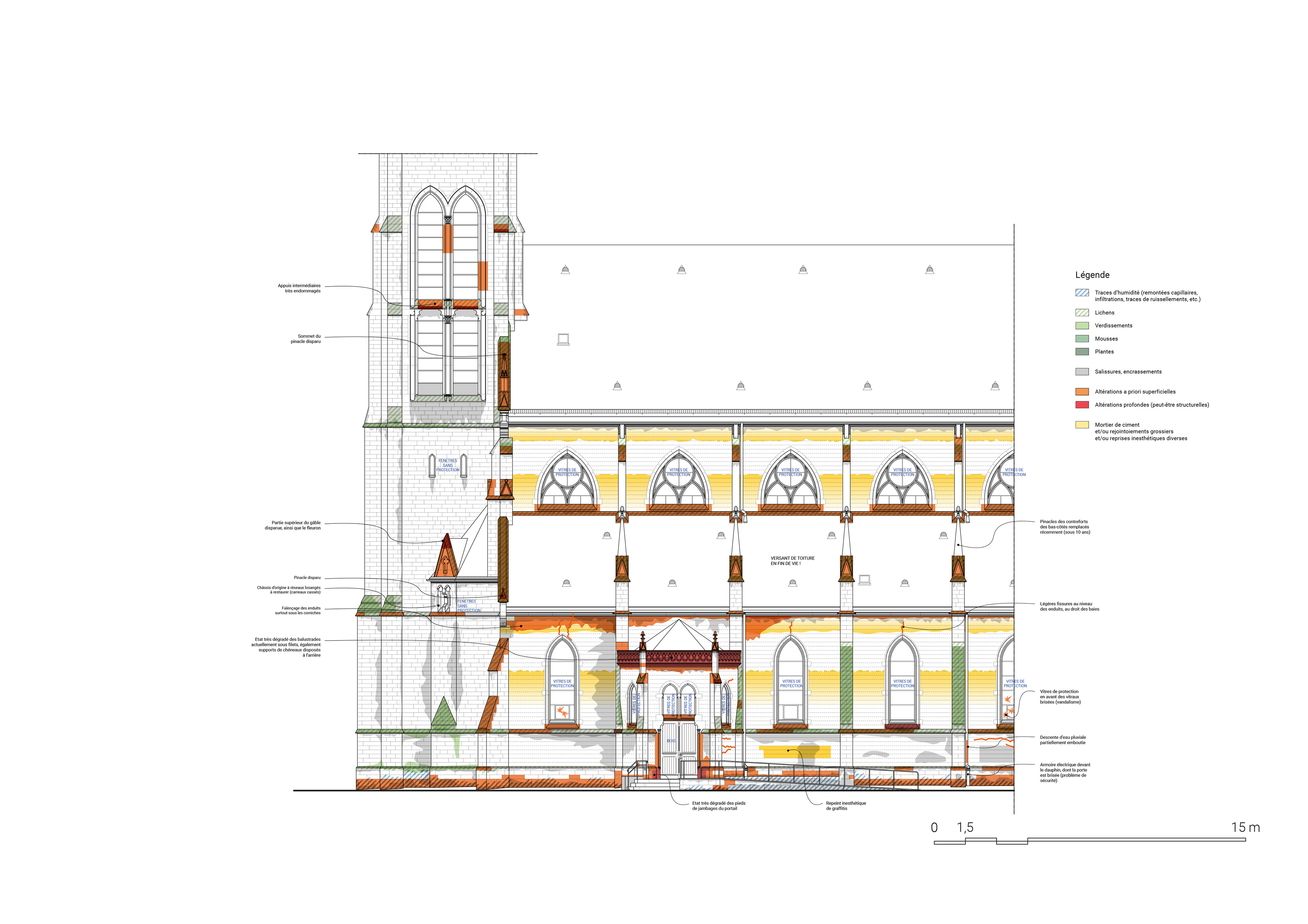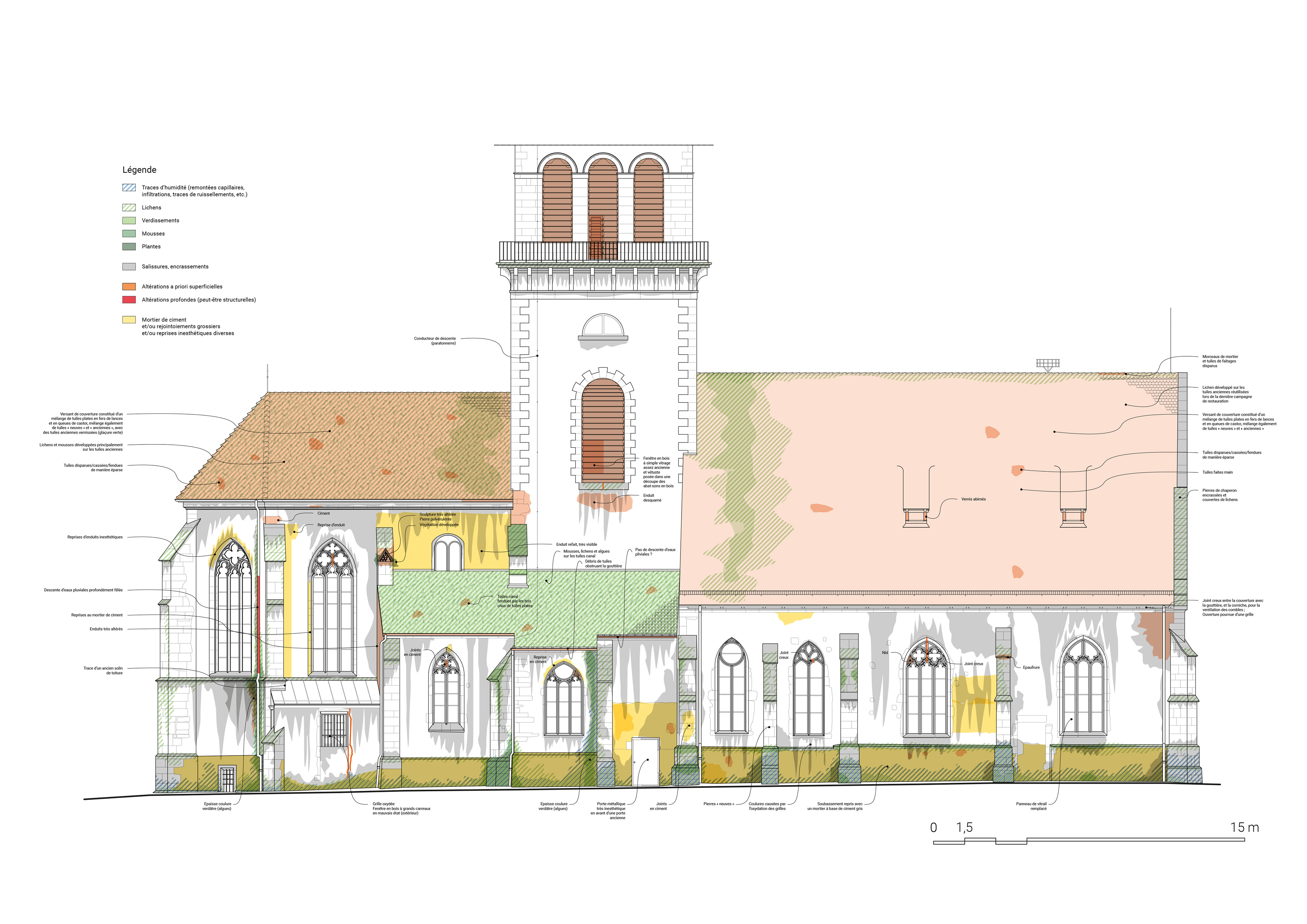 Etat sanitaire et cartographie en plan des désordres et pathologies d'un édifice